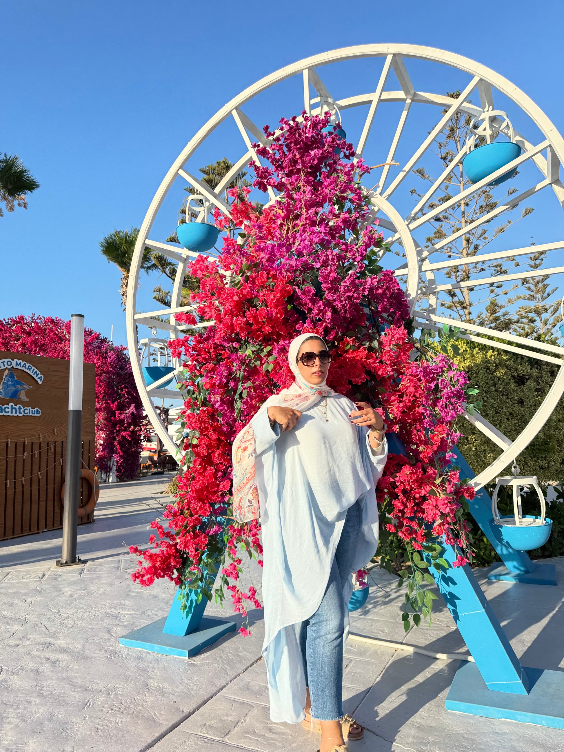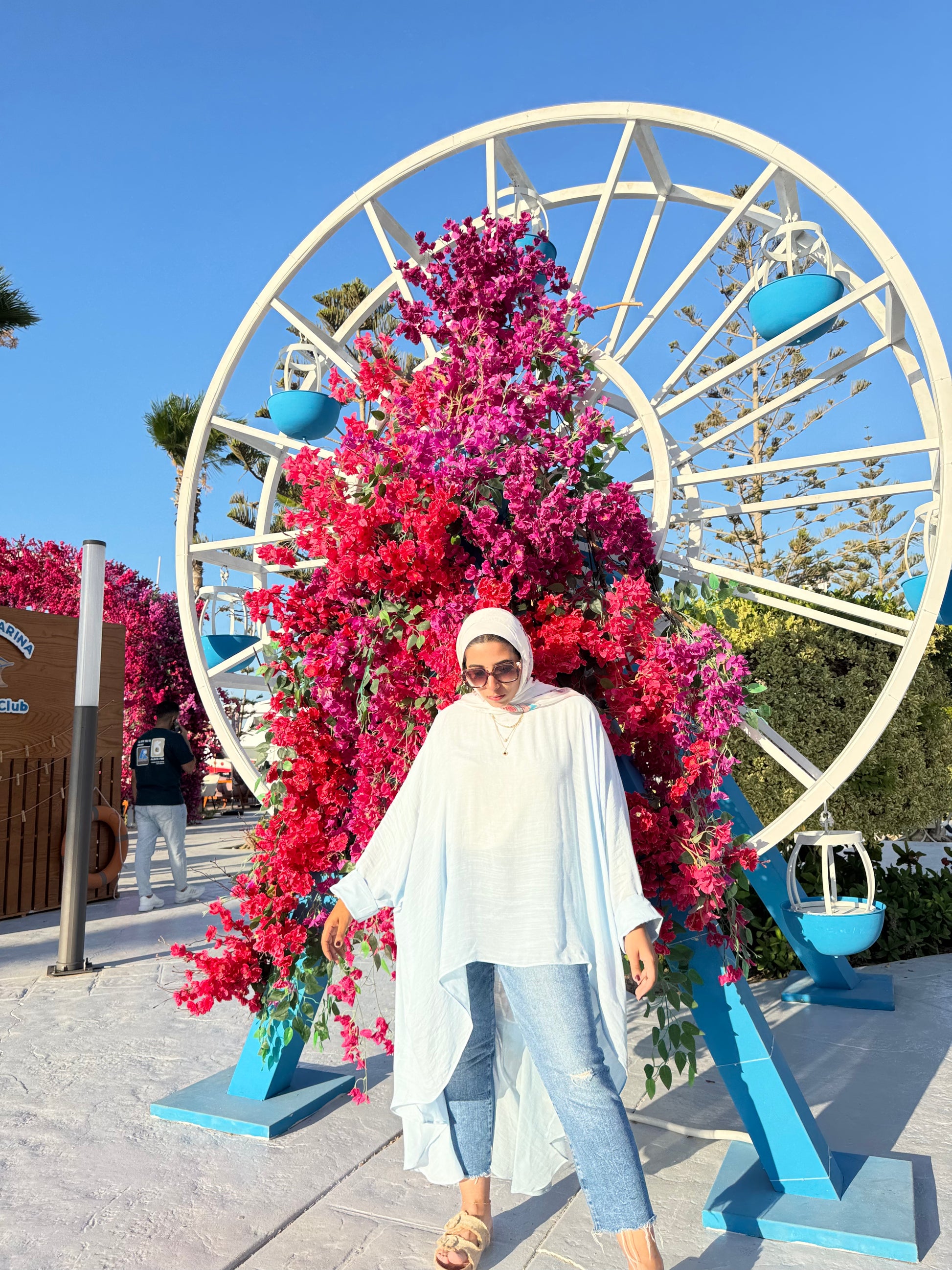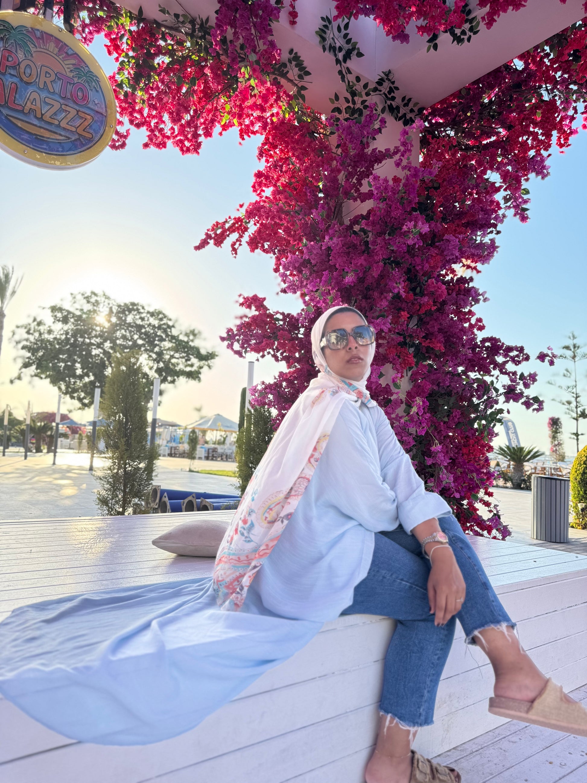 This oversized low-high top flows with ease, featuring a modern side slit and timeless modesty.