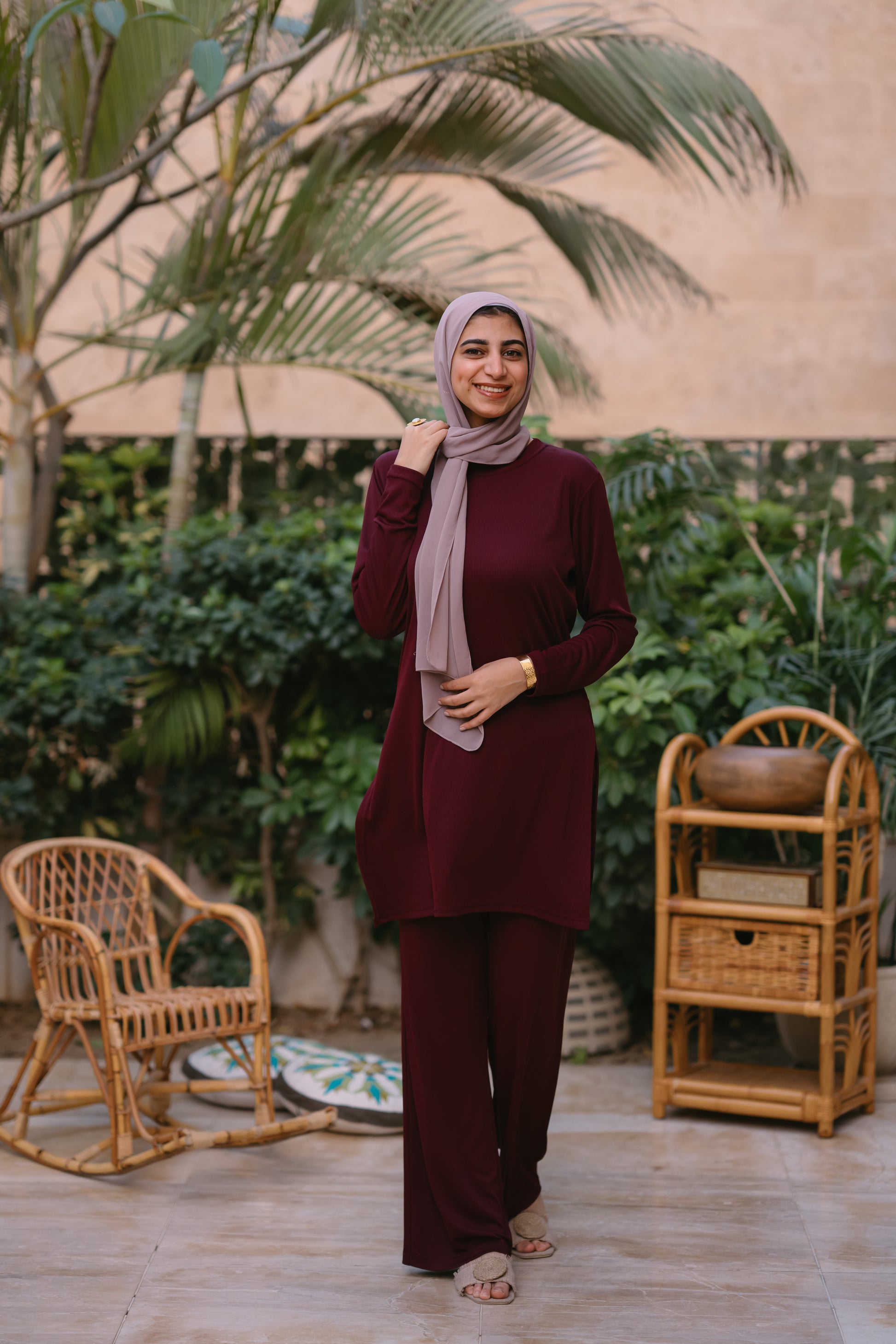 Nasaya soft breeze ribbed Set "Pants & blouse" Burgundy