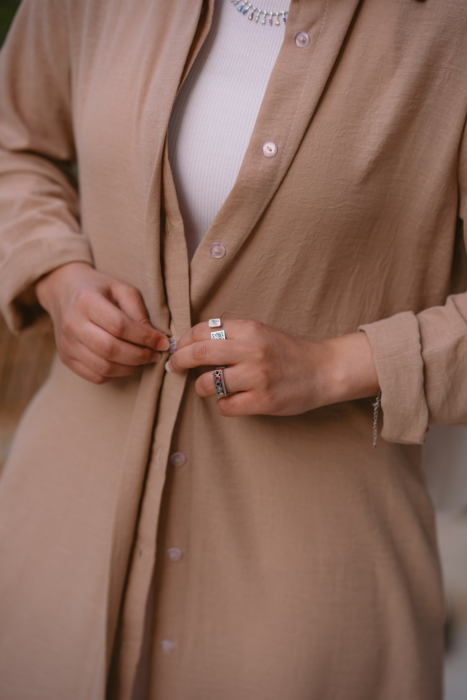 Nasaya whispered elegance Linen beige shirt dress